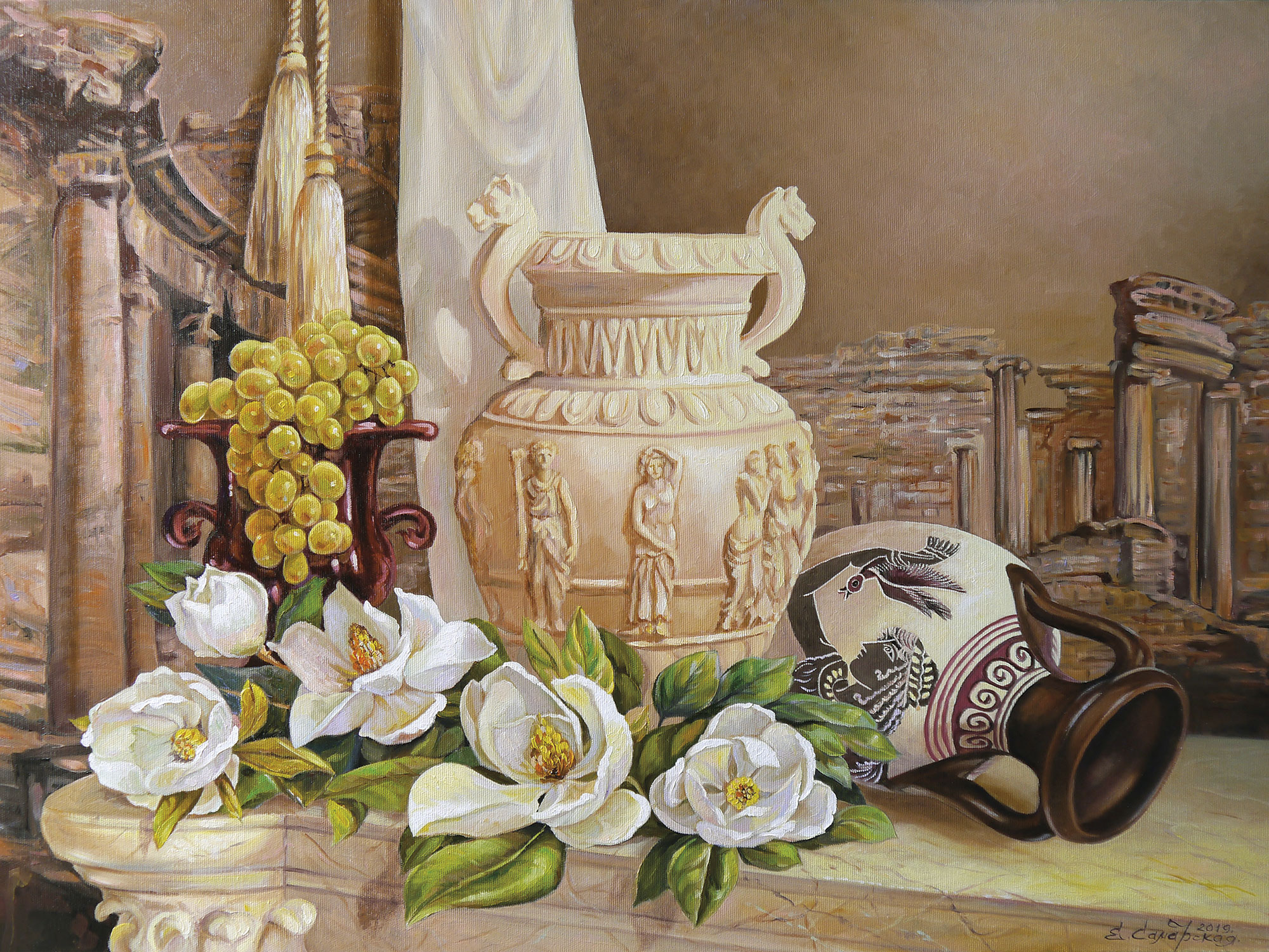 С римской вазой и лозой винограда