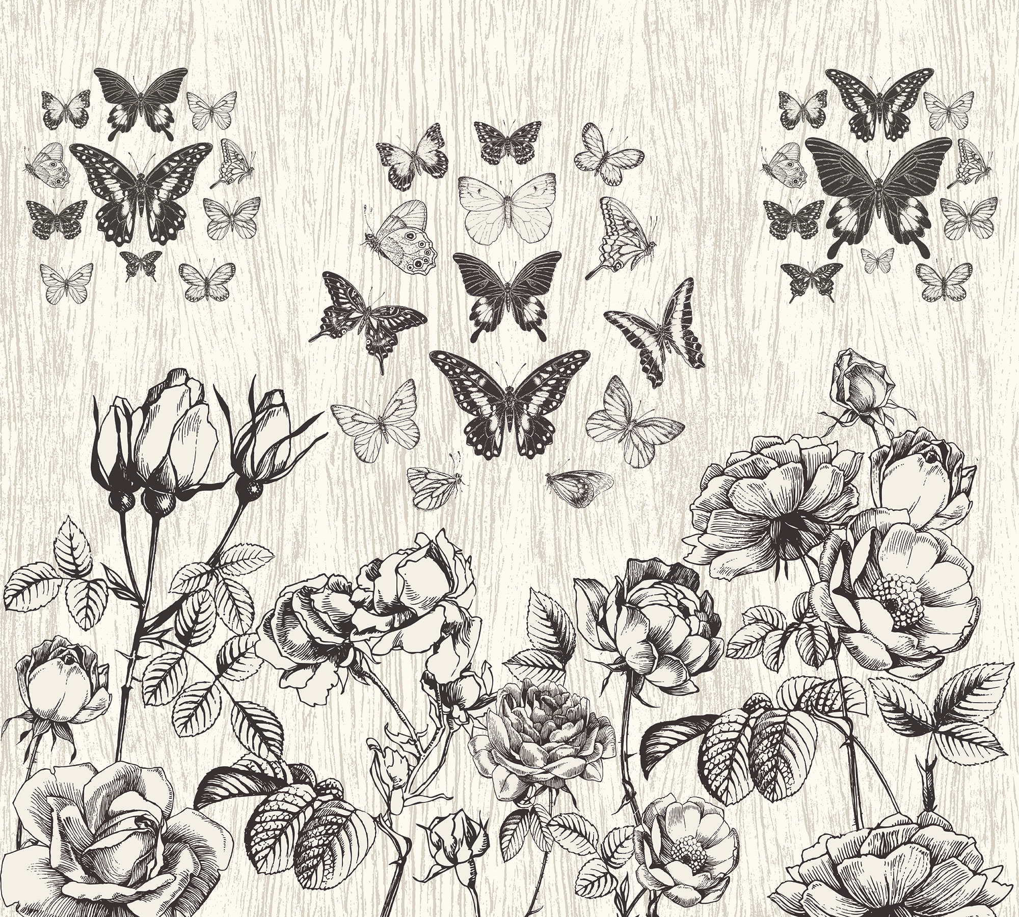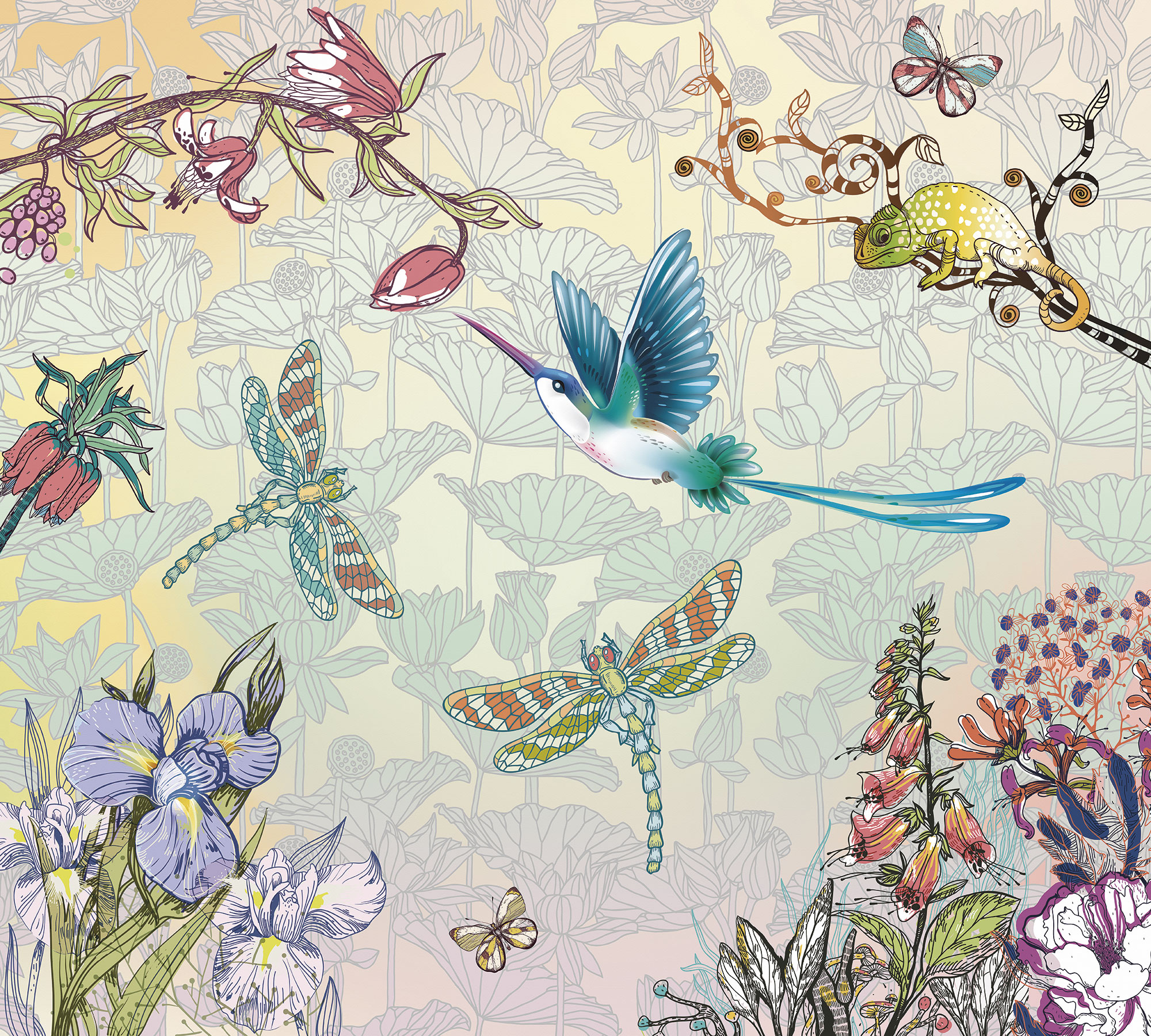 Бабочки и тропические цветы
