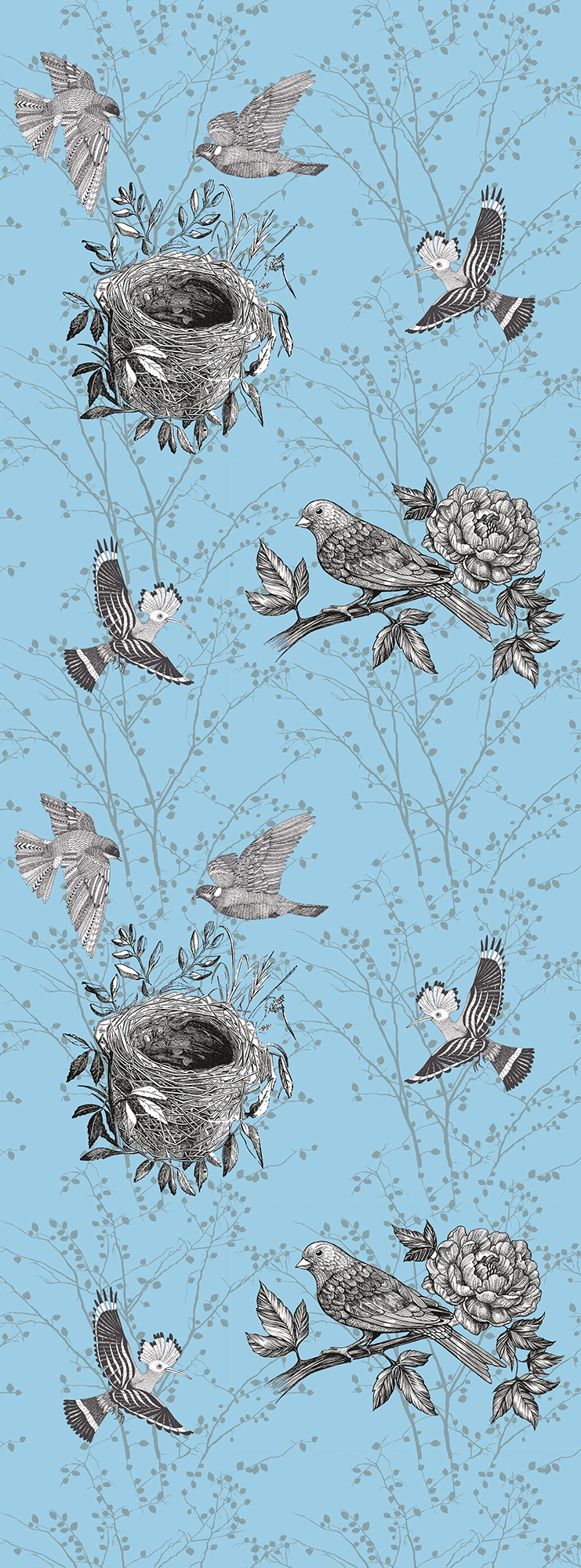 Птичьи гнезда на голубом фоне