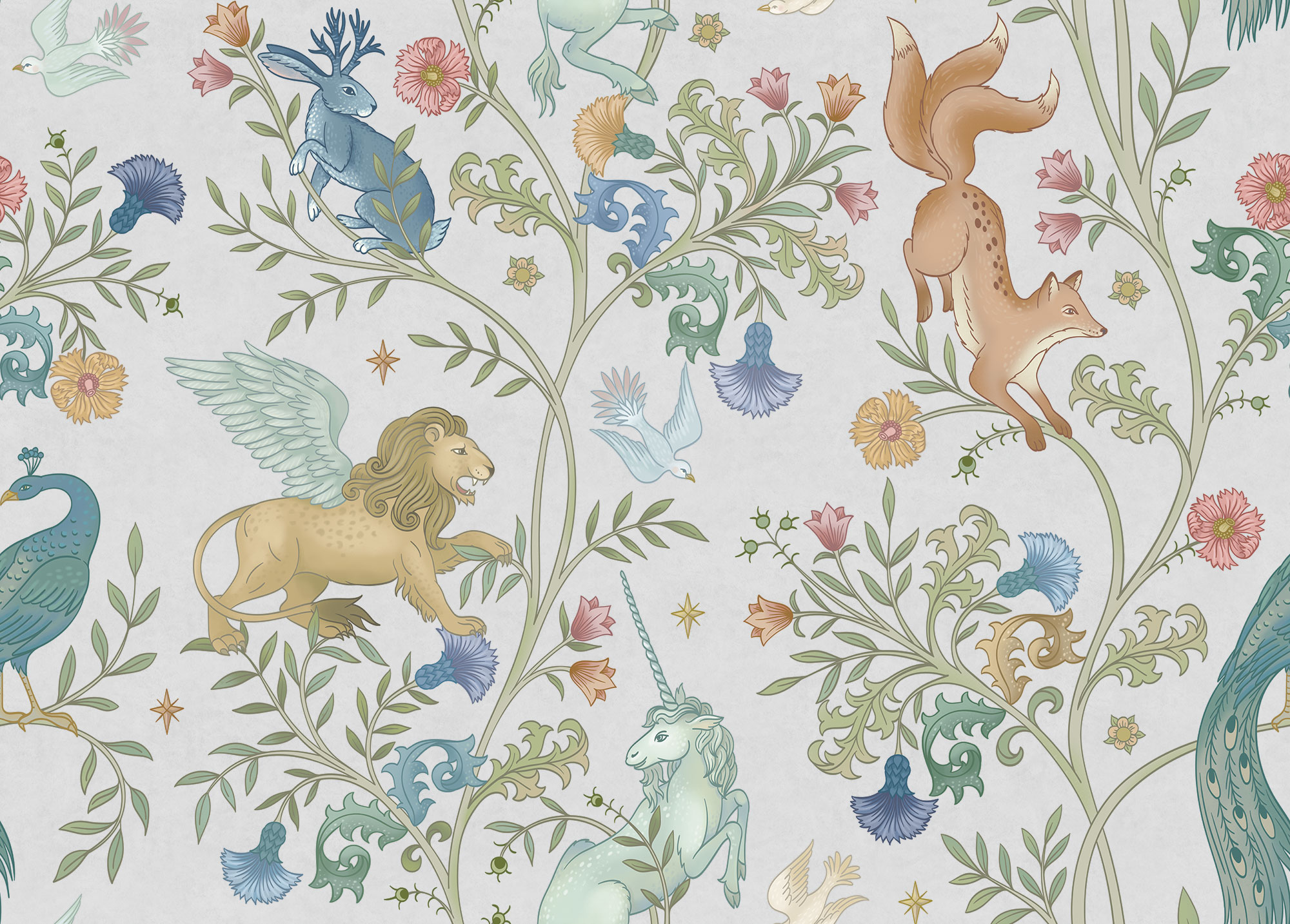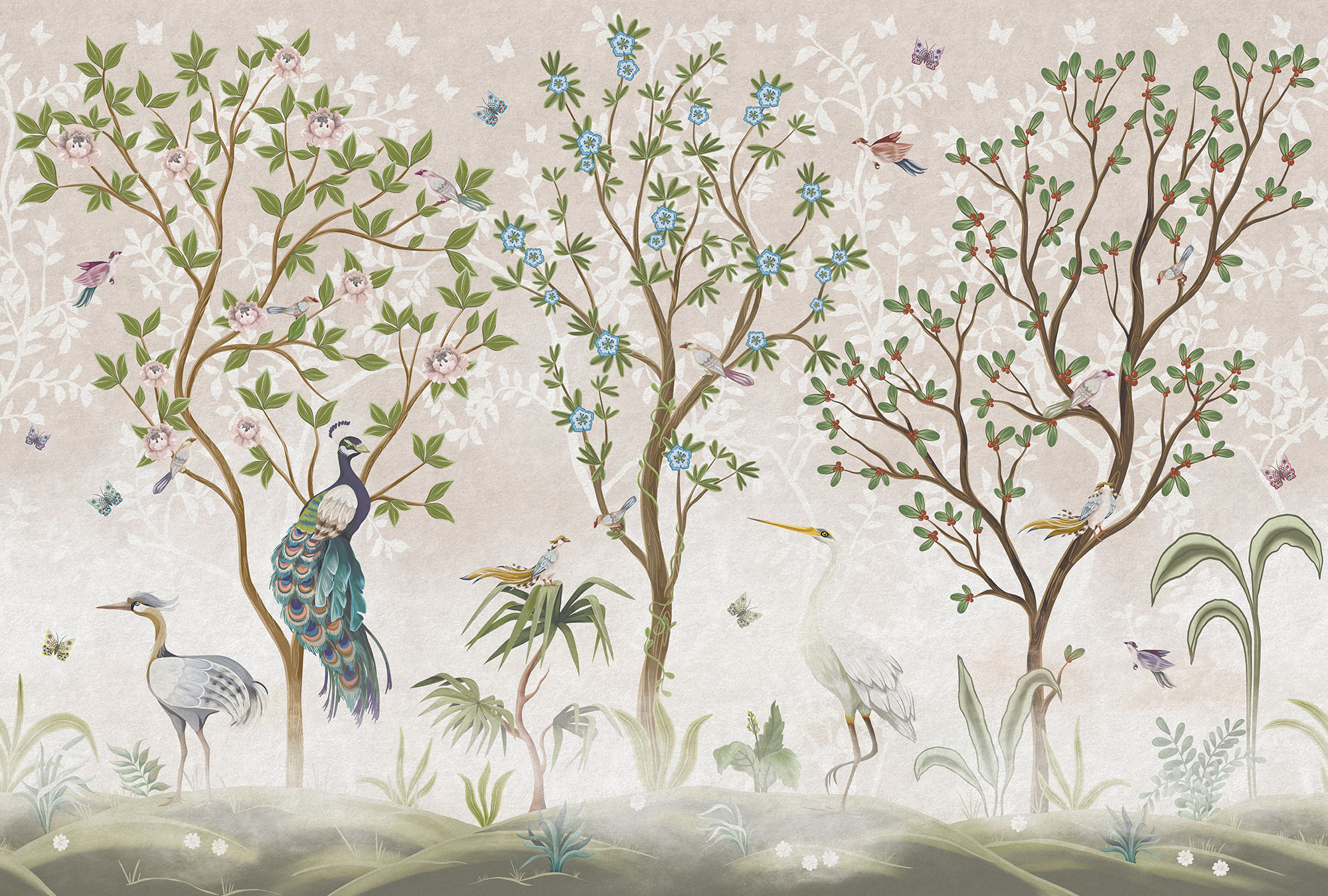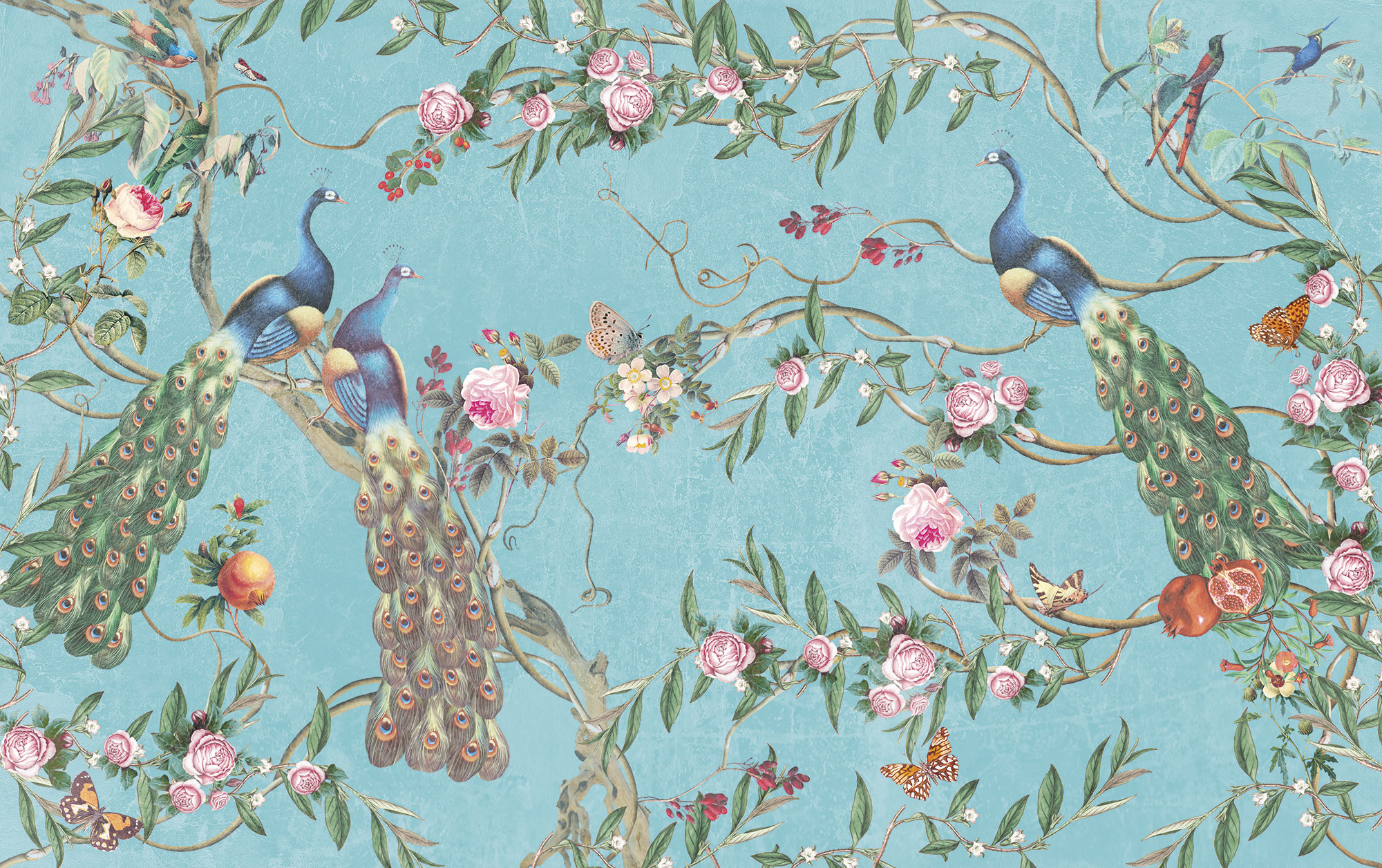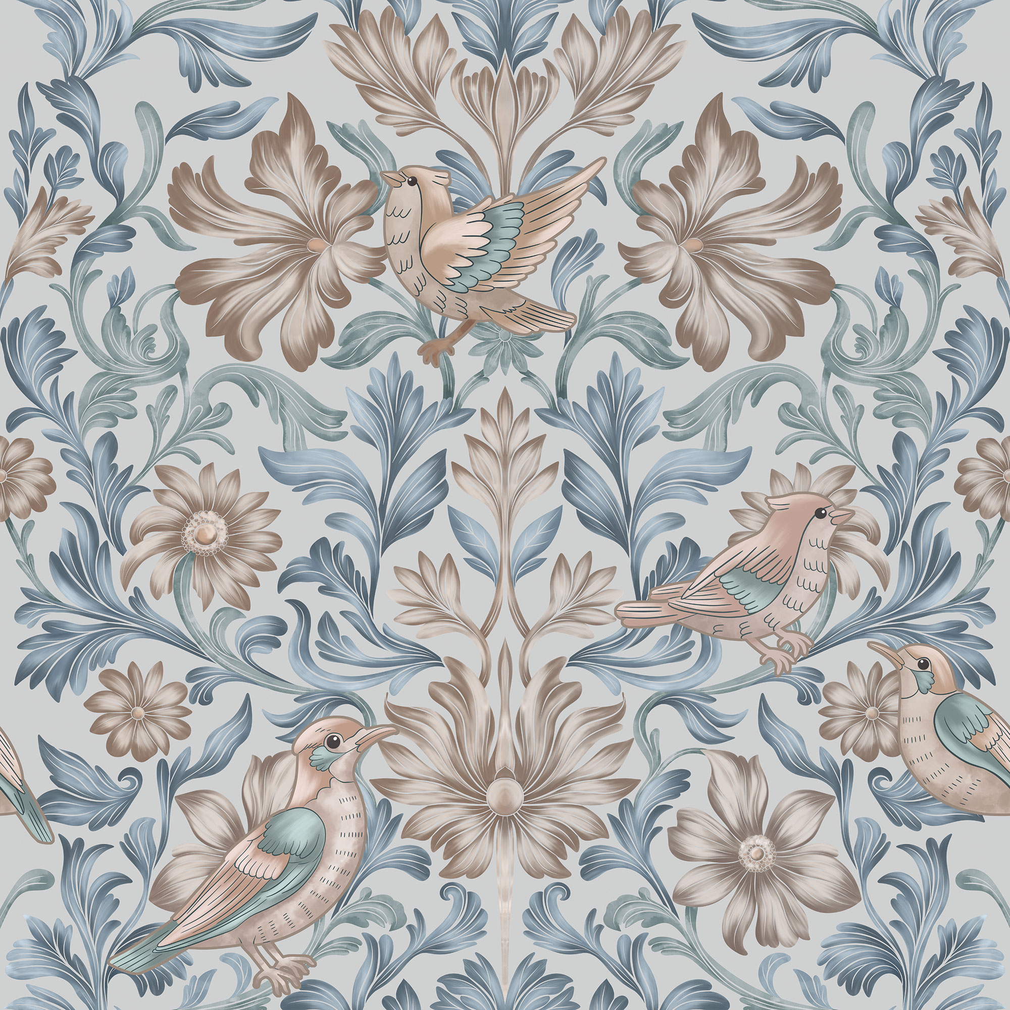 Paradise Peacocks light gray sea