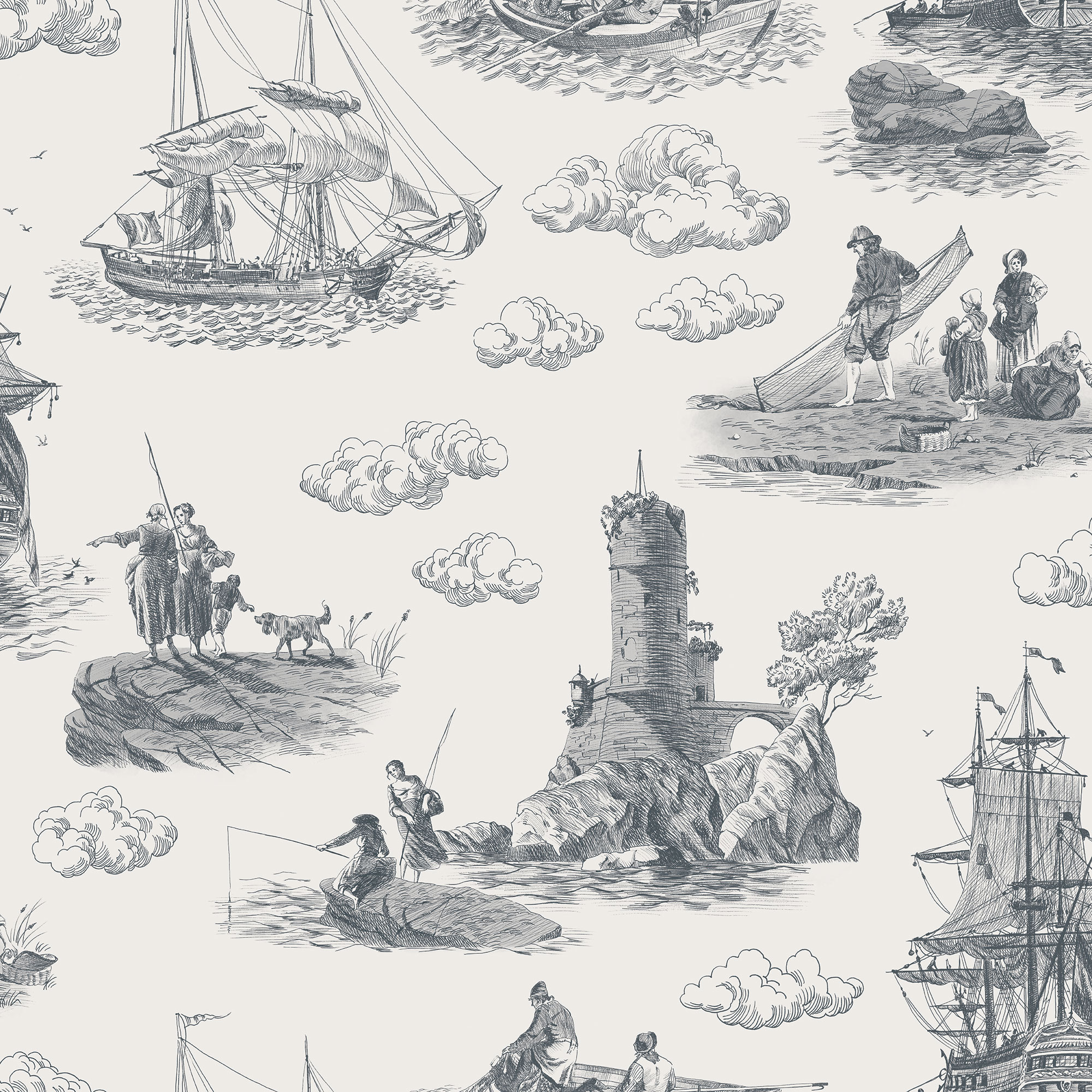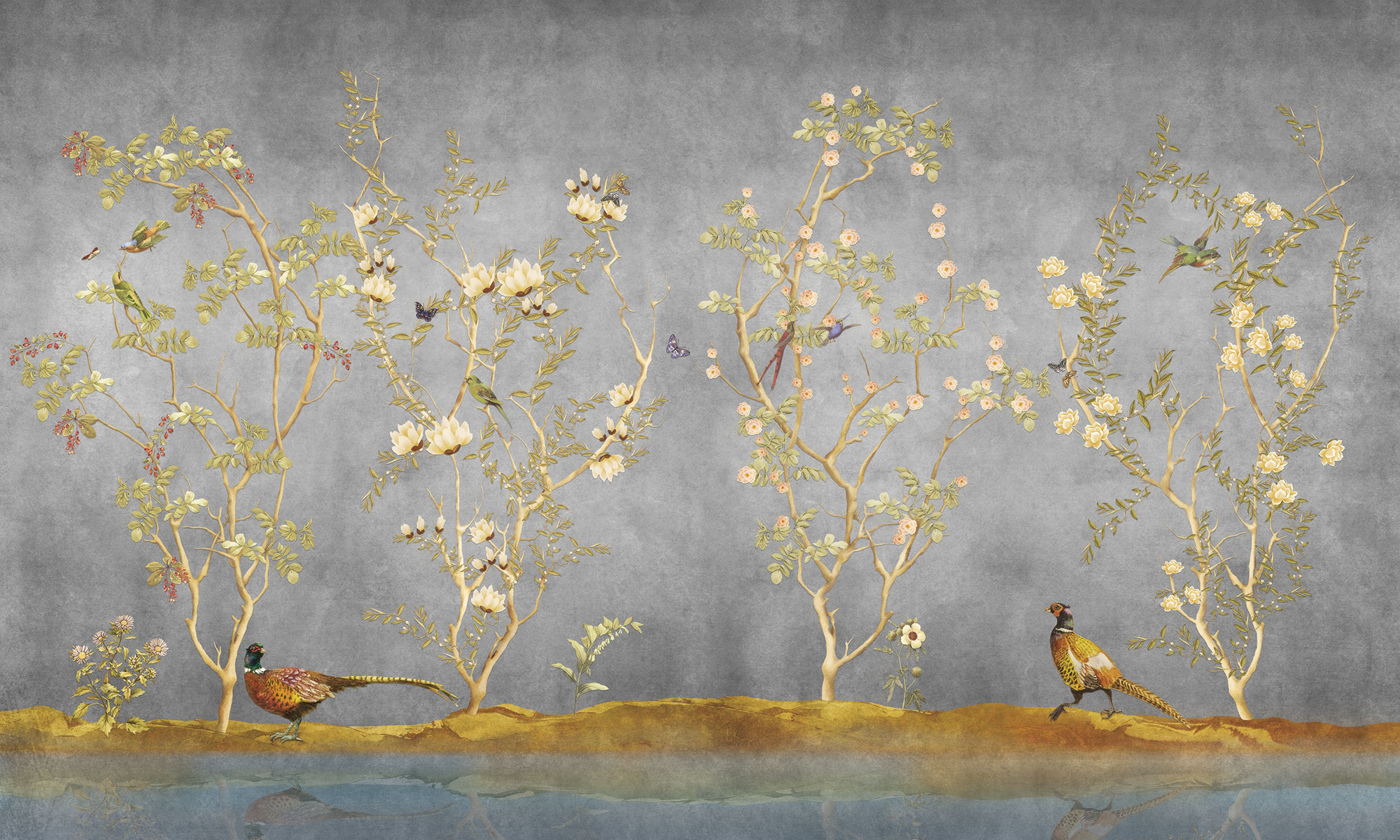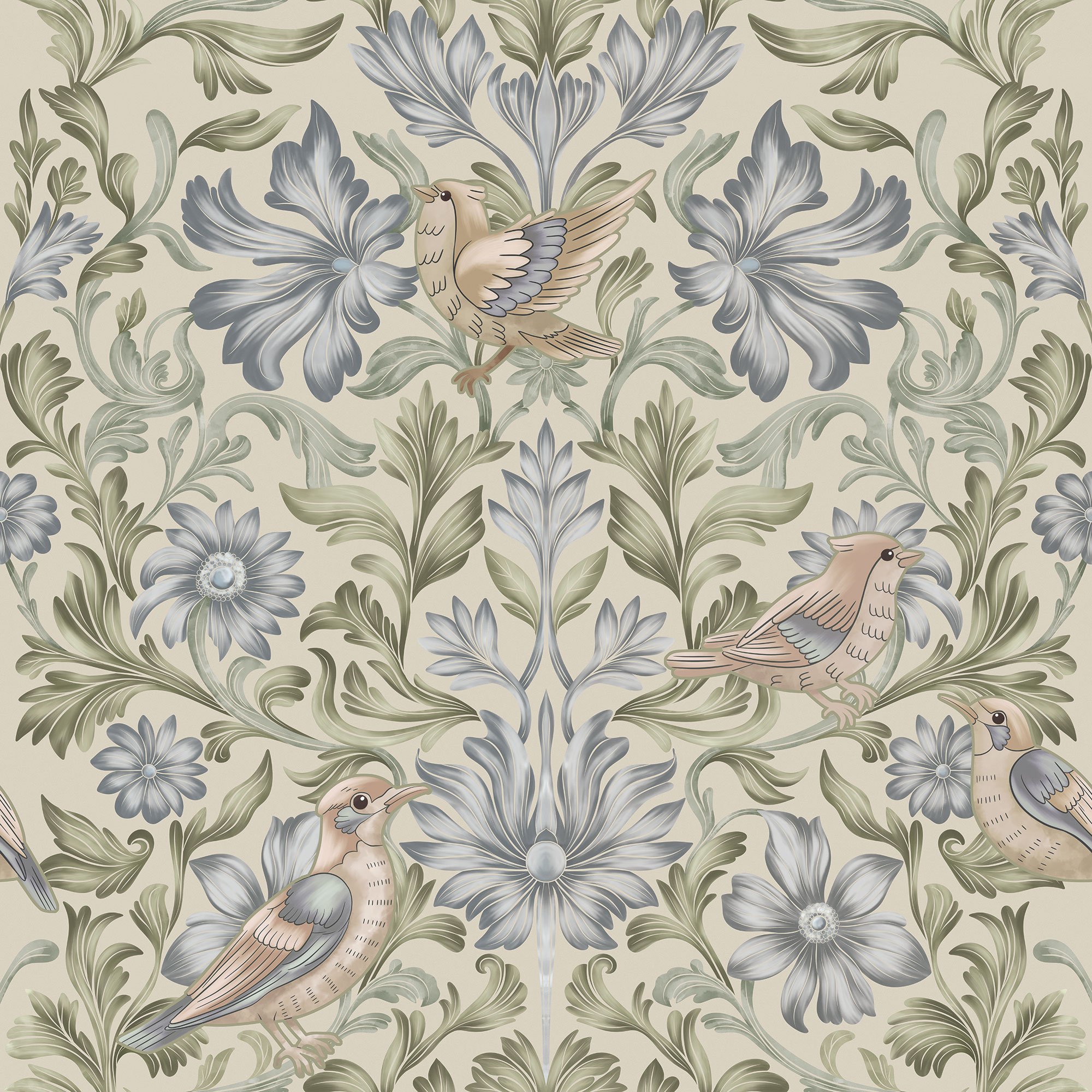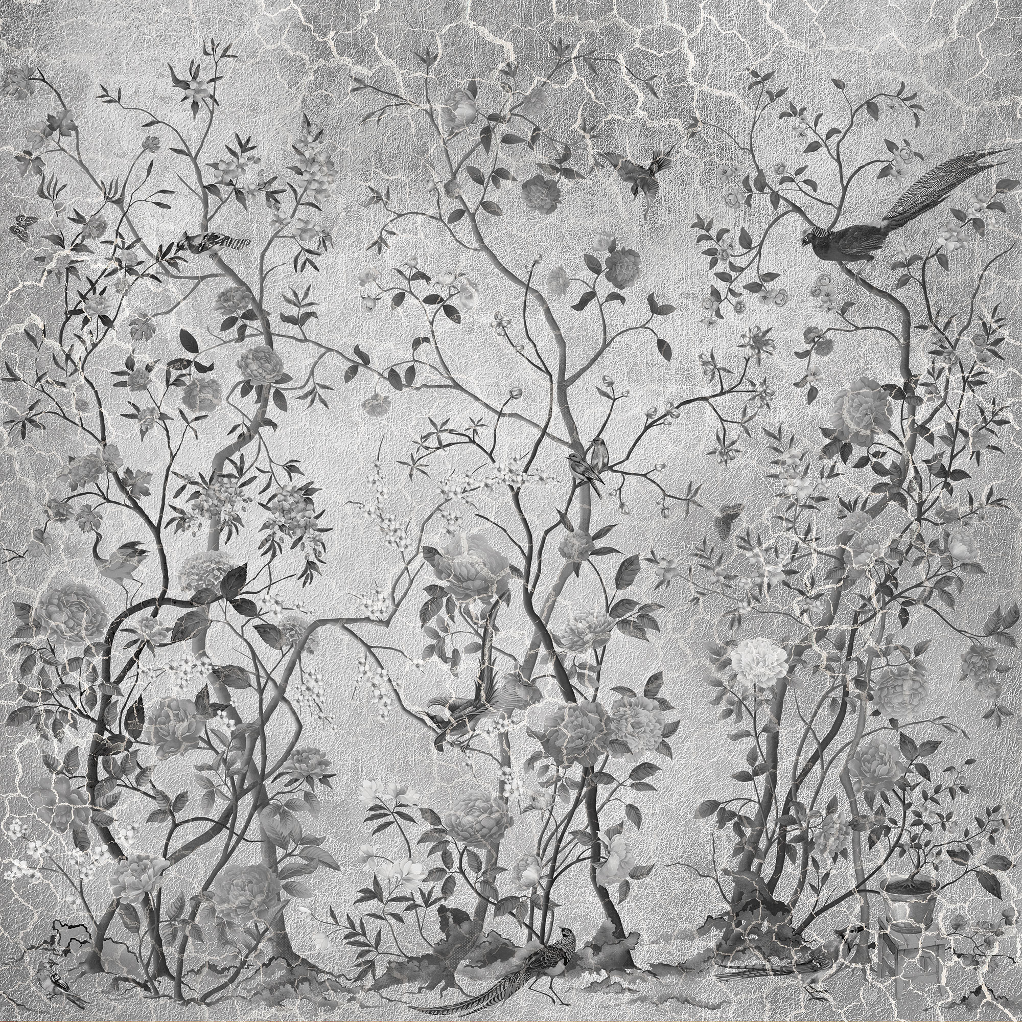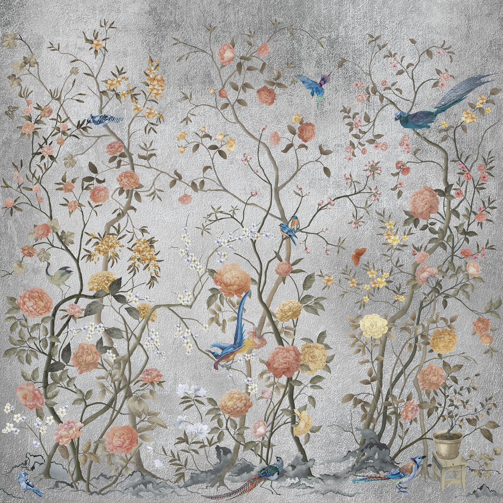 Paradise Peacocks light gray sea