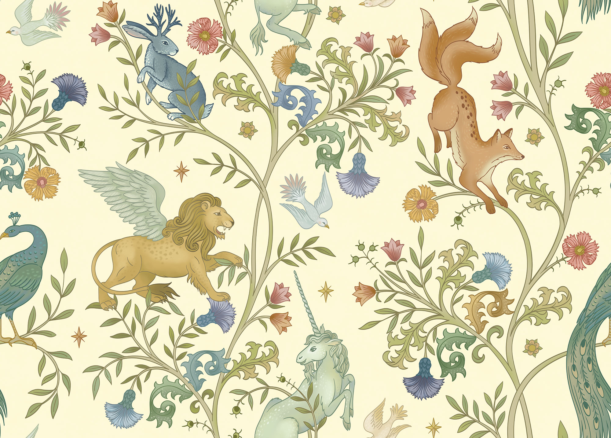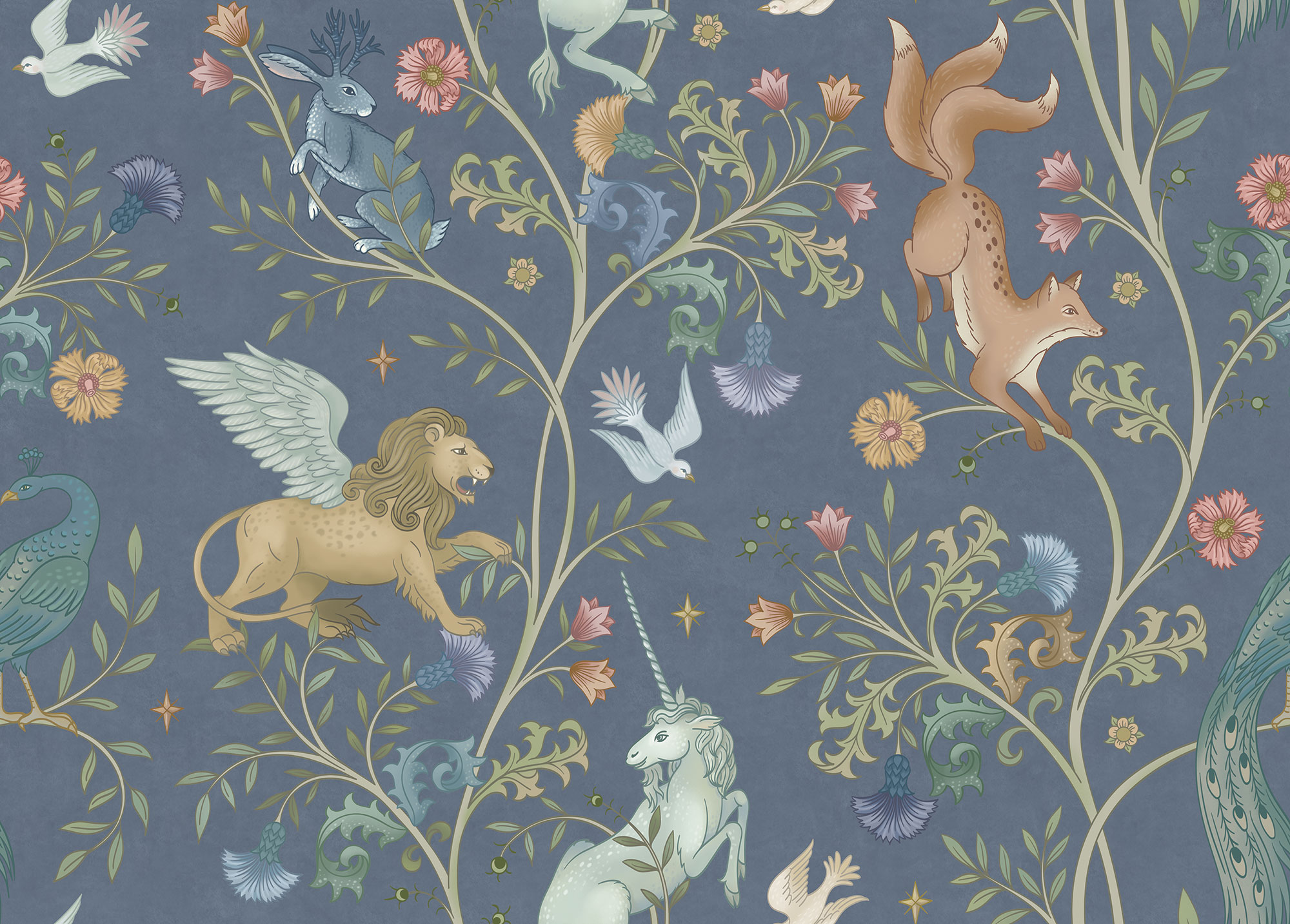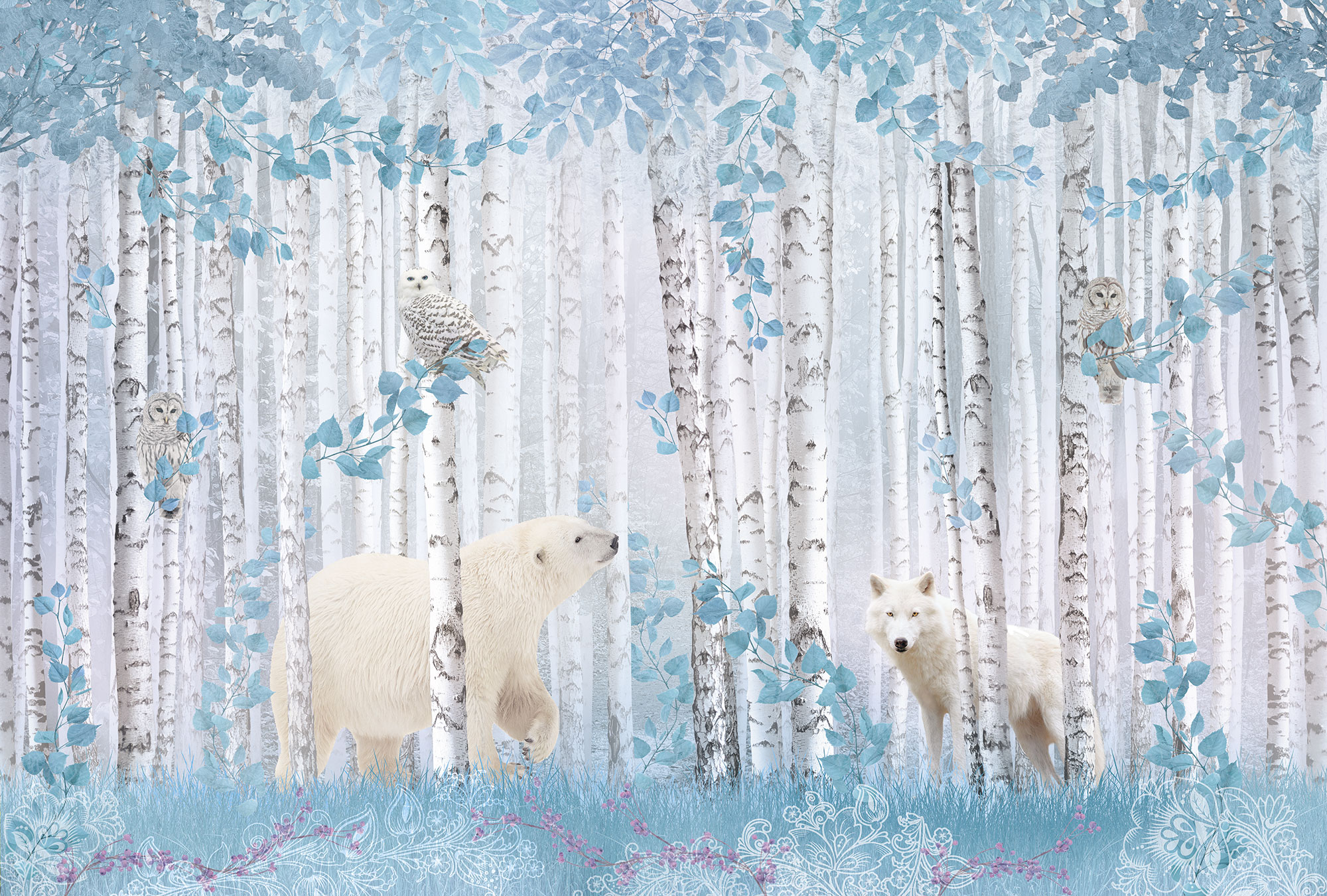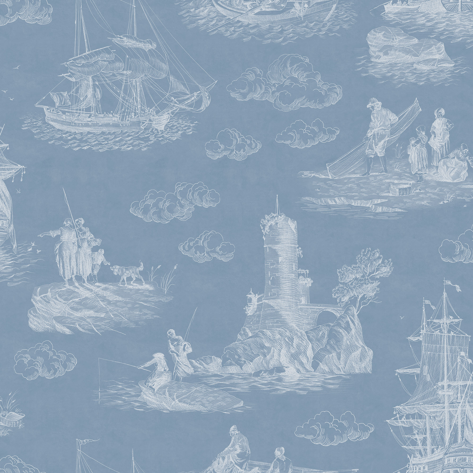Paradise Peacocks light gray sea