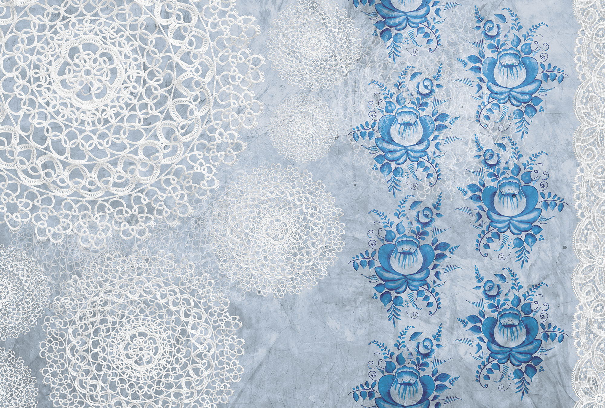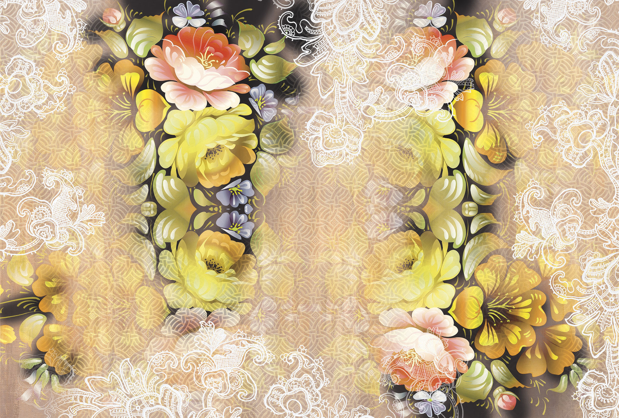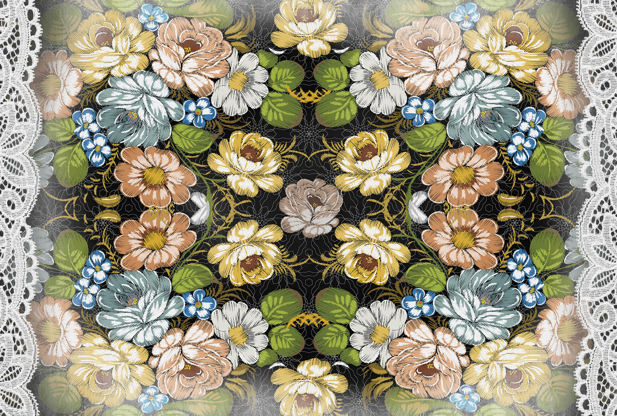 Жостовские цветы с кружевом