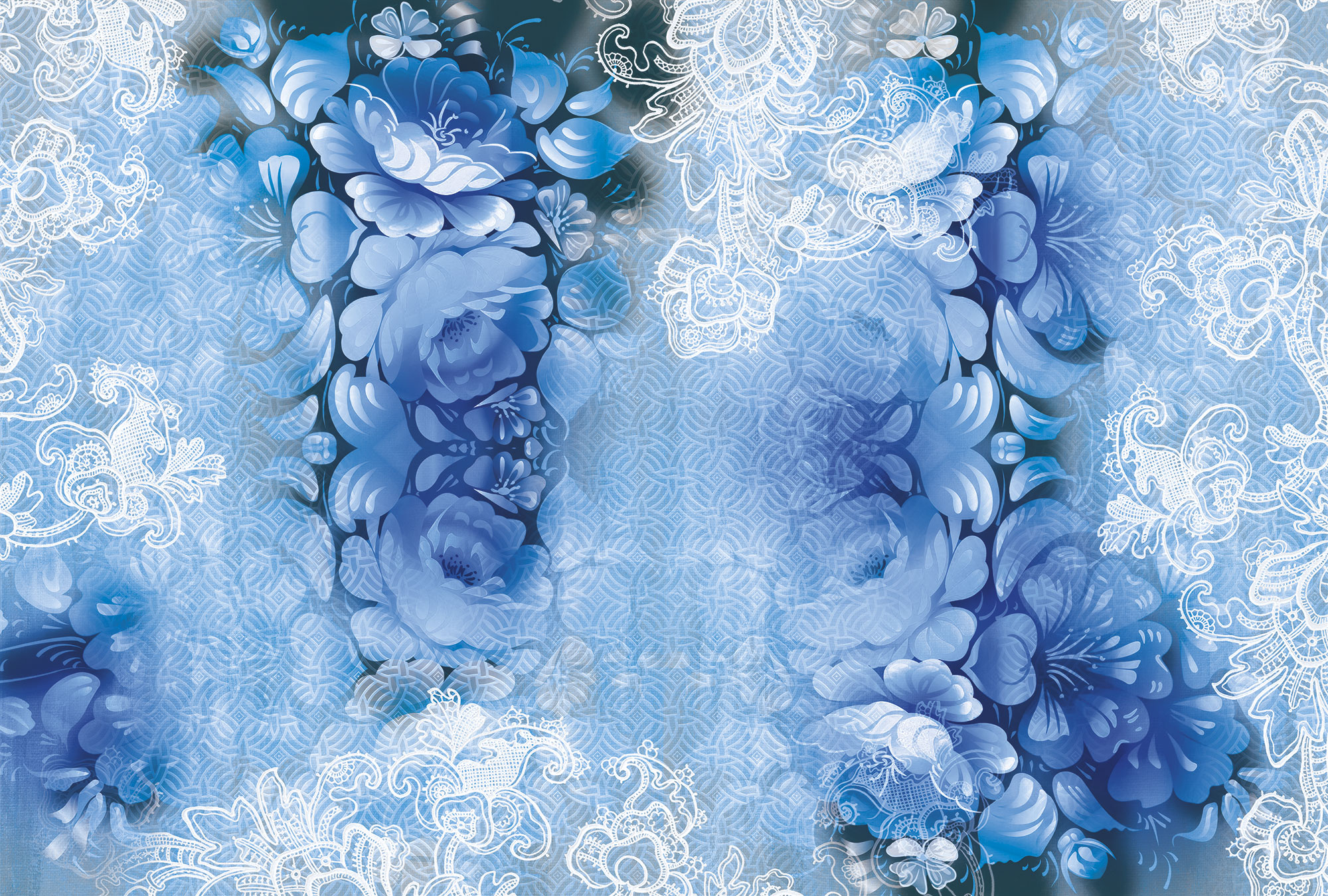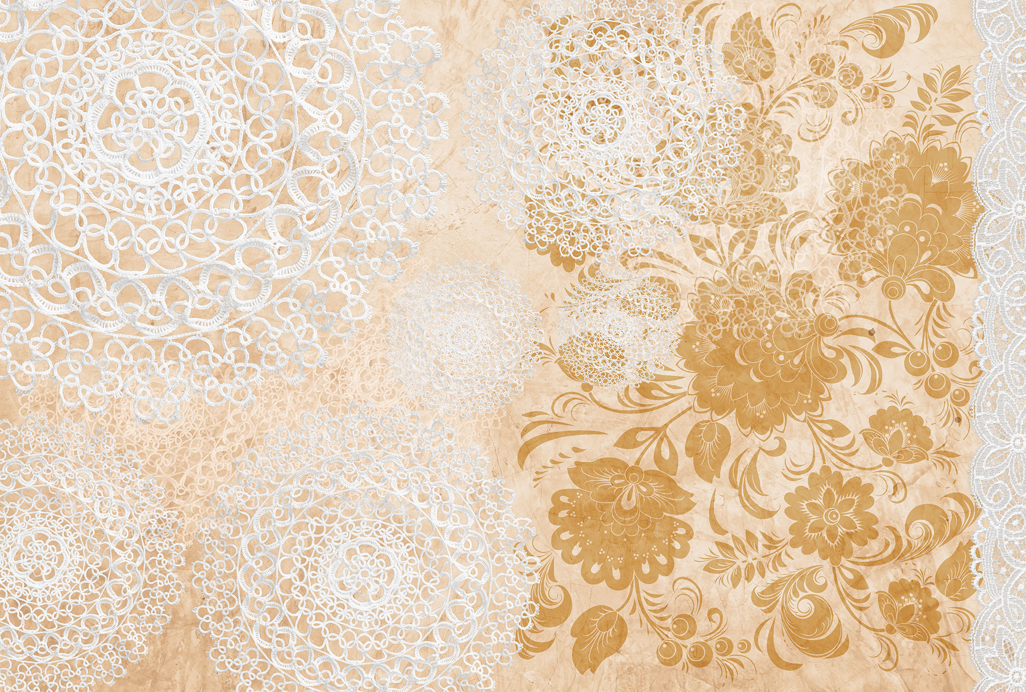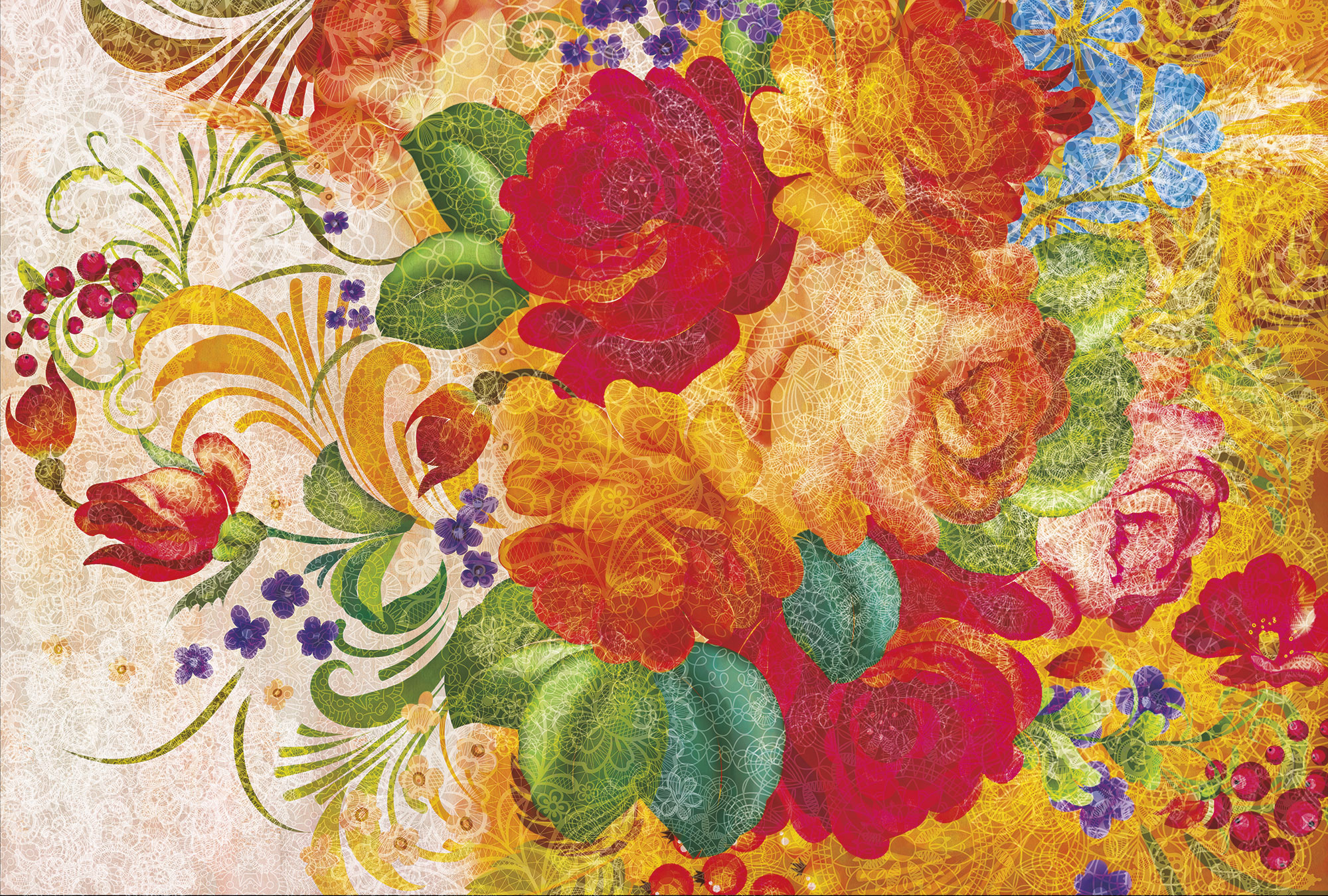 Жостовские цветы с кружевом